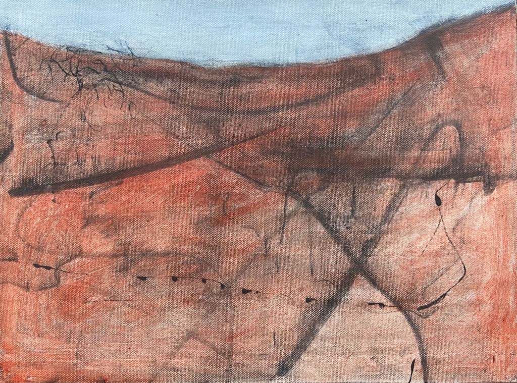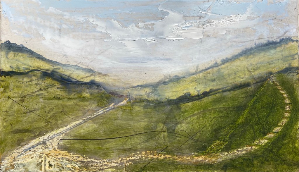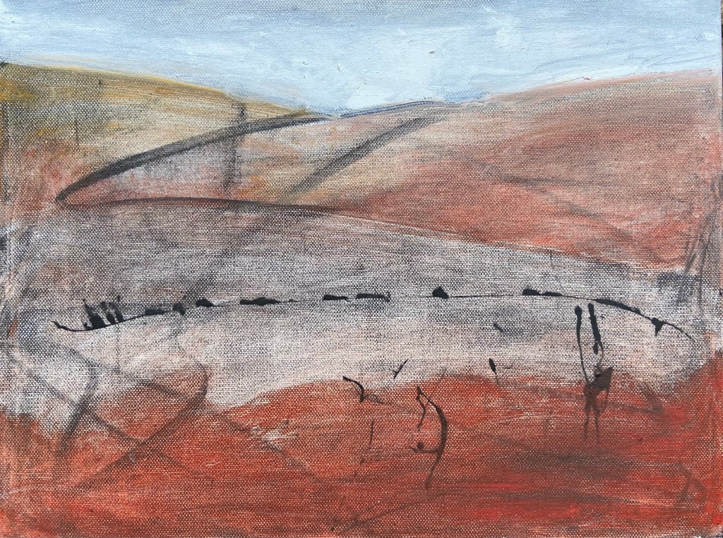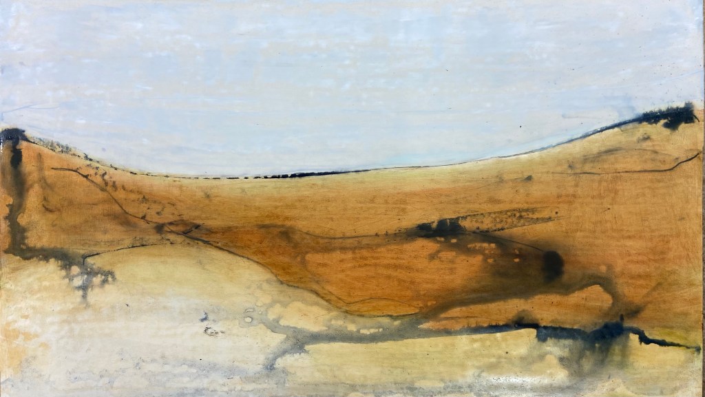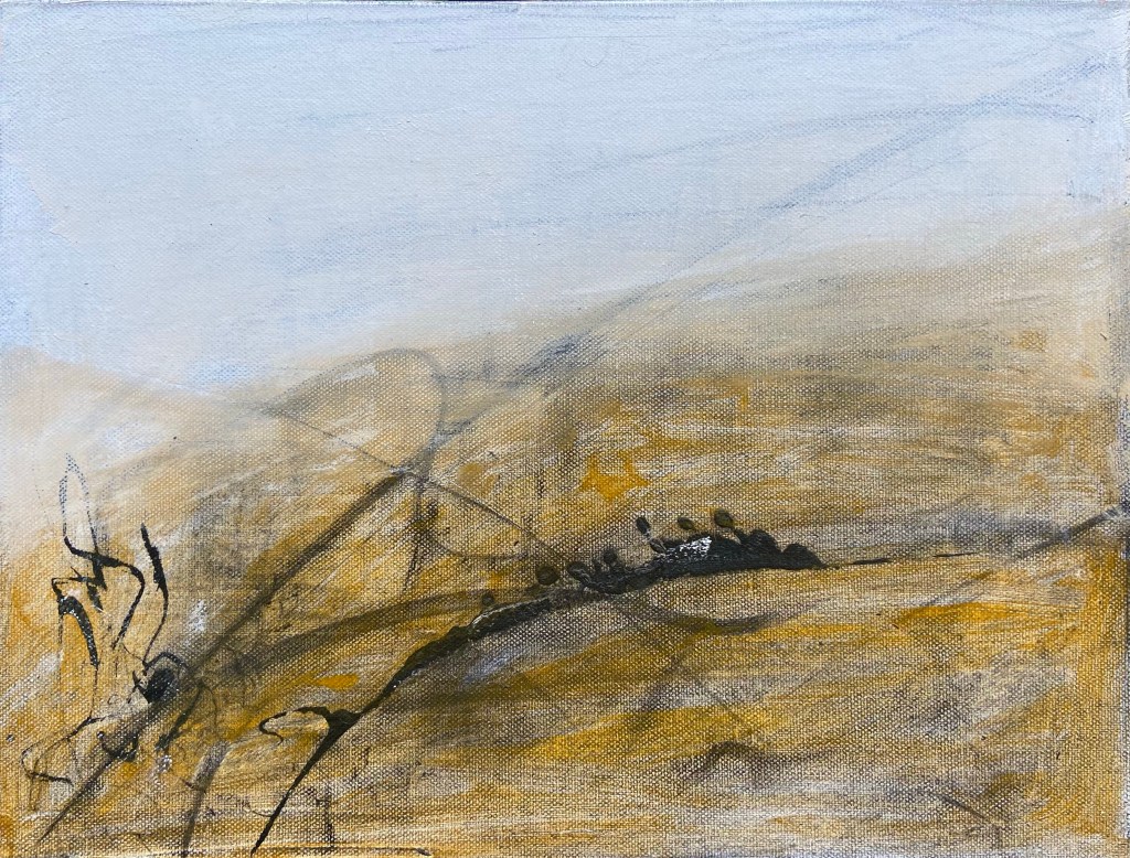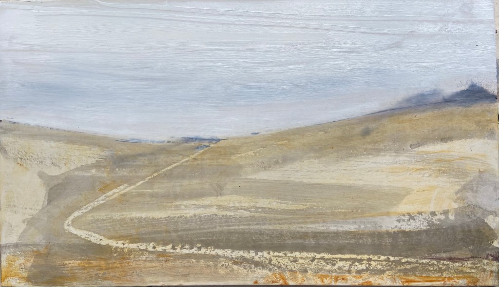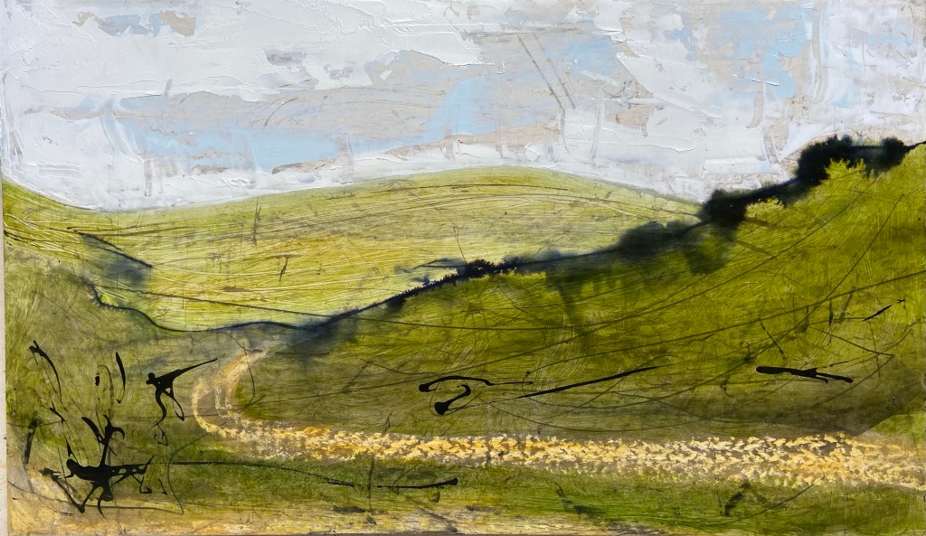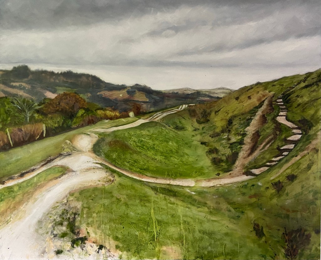 An immersive and experiential recollection of many walks to my local retreat, the Iron Age Hill fort of Cissbury Ring. Seeped in history and meaning, I hope to evoke through my work a sense of being in a place where many have trodden before me. A palimpsest of marks and memories of what lies beneath and within a place.