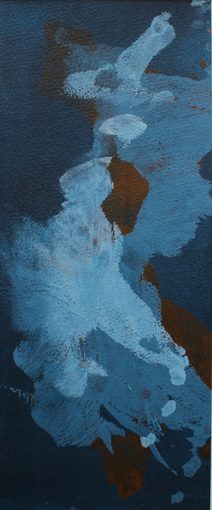 Slide show comprises: Dasein small preparatory colour studies – acrylic on paper squares 13cm x 13cm – Feeling orange, Feeling luminous and grey, Feeling yellow and vibrant, Feeling a shadow of pale yellow, Feeling olive and mauve, Feeling electric blue and zesty. Small rectangles, acrylic on paper 13cm x 20cm – Haptic orange, Haptic blue.