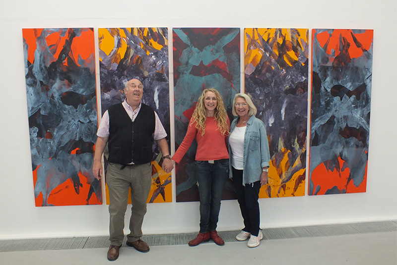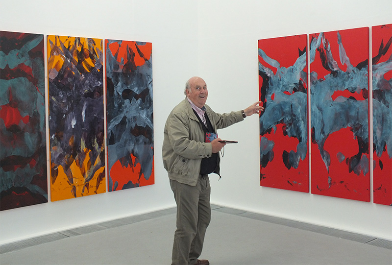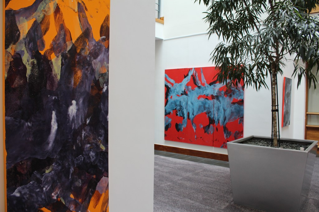 Slide show comprises: Dasein (Red Triptych), Dasein (Pentaptych), Dasein (Yellow Triptych), Dasein (Orange Triptych), Dasein (Green Triptych), oil and acrylic on ply wood 198 cm x 76cm each panel. Dasein (Transparent), acrylic paint on transparent acrylic 170 cm x 140 cm. Dasein (Blue Triptych) acrylic on MDF, 60cm x 100cm per panel.